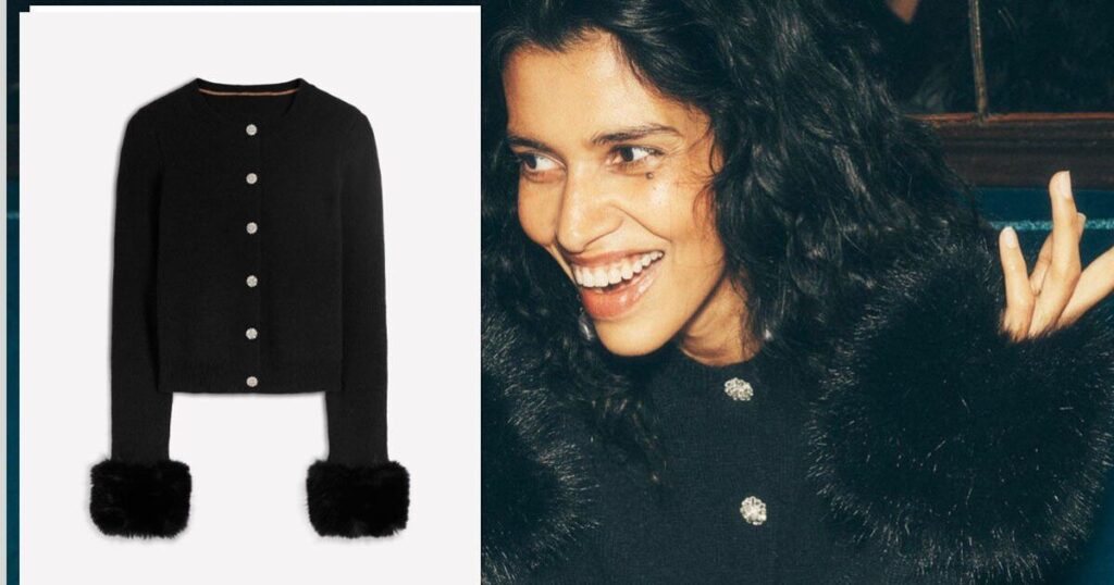 The fashion retailer has the Fur Trim Cardigan in black for £129, but shoppers will get 15% off all new styles, using the code WXVK, taking the price down to £109.65. Fancy as well as functional, the faux fur cuffs and jewel buttons elevate the cardi to party-ready status.