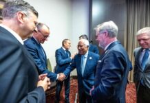 “I’ve posted this before but wanted to share again,” she noted. “Simply tie two wreaths together with a long piece of ribbon and hang over the door.”